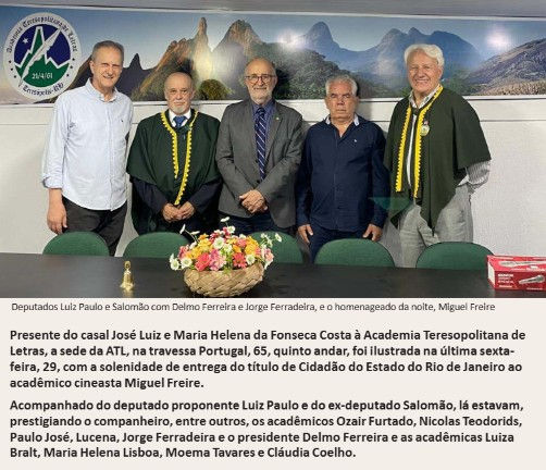 Deputados Luiz Paulo e Salomão com Delmo Ferreira e Jorge Ferradeira e o homenageado da noite, Migue